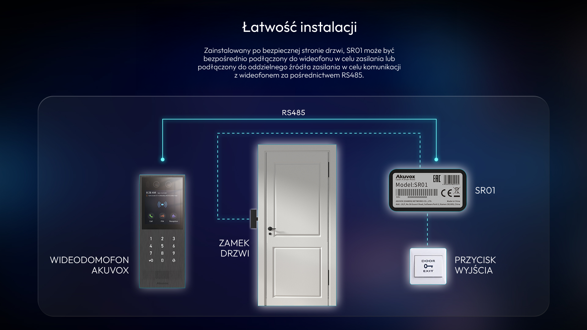 SR01 to niewielkie akcesorium poprawiające bezpieczeństwo drzwi sterowanych przez domofony Akuvox. Zapewnia to, że drzwi pozostaną bezpiecznie zamknięte, nawet jeśli domofon zostanie zdemontowany lub zniszczony.