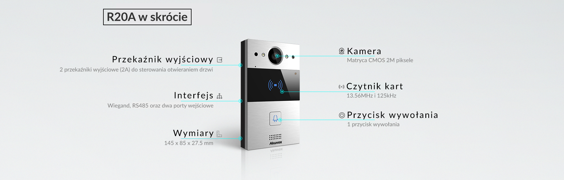 Prawie wielkości iPhone’a XR, Akuvox R20A to wideodomofon SIP specjalnie zaprojektowany do wąskich przestrzeni.